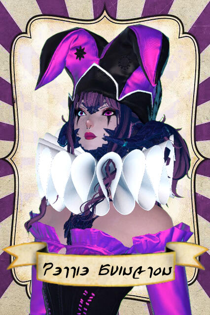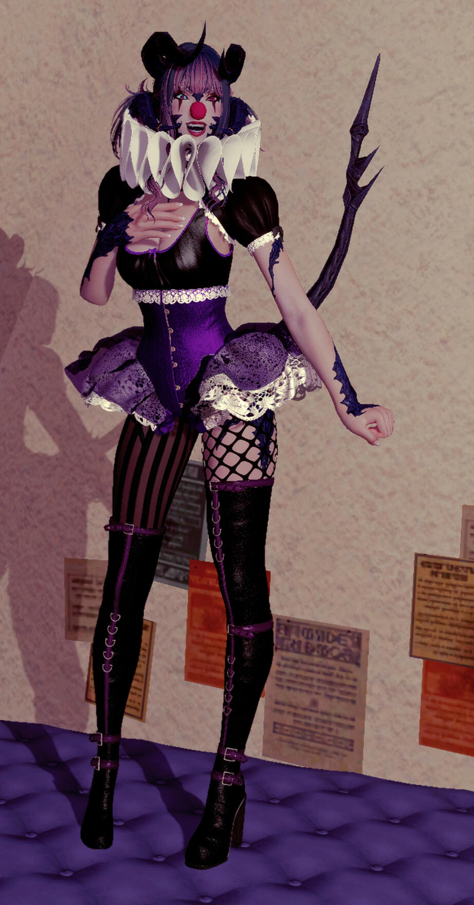 APPEARANCE: Small but Athletic. Even when not working she dons jester like makeup, with matching tattoos across her collar bone. Deep scars line her waist that she doesn't hide.