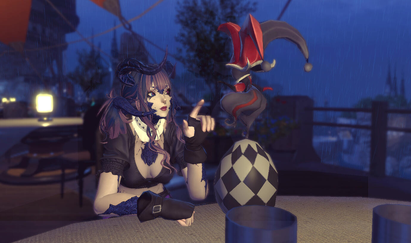 Several years and one terrible relationship later Kettle decides to travel solo, leaving the Theatre Troop while visiting Gridania and Joining The Continental Circus as a Clown and Acrobat. Quickly becoming aware of the Voidsent situation Kettle began also taking side jobs for the circus in order to collet aether for her fellow carnies.With her new life in Gridania Kettle began making new friends, quickly joining a Free Company with her new friends Lexe Martin, and Moose Elkinston. All of them happily doing what they could when the Eorzean Alliance called upon their company for help. More war and fighting, but this time for a side she actually believed in and wanted to be on. Kettle doesn't talk about this time much, but if you asked the two who knew her best they would tell you there was something about a high ranked Garlean soldier named Osa Pyr and Kettle's her new friend Lexe who had to do "what was needed" in order to save her life.